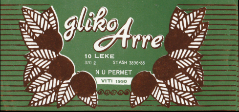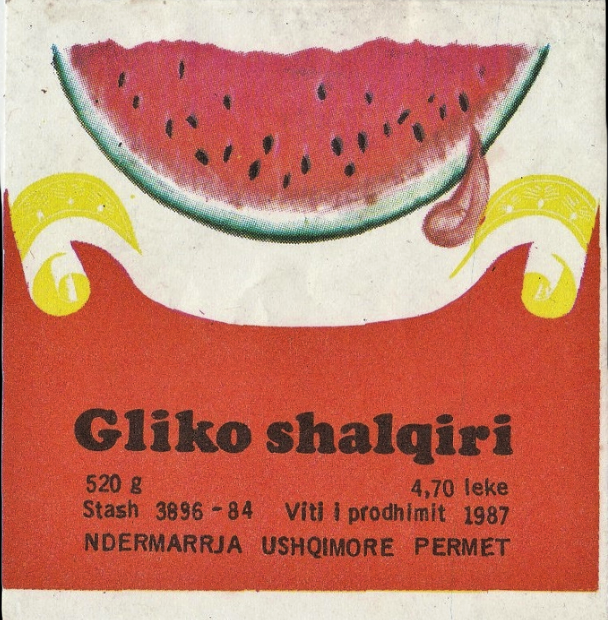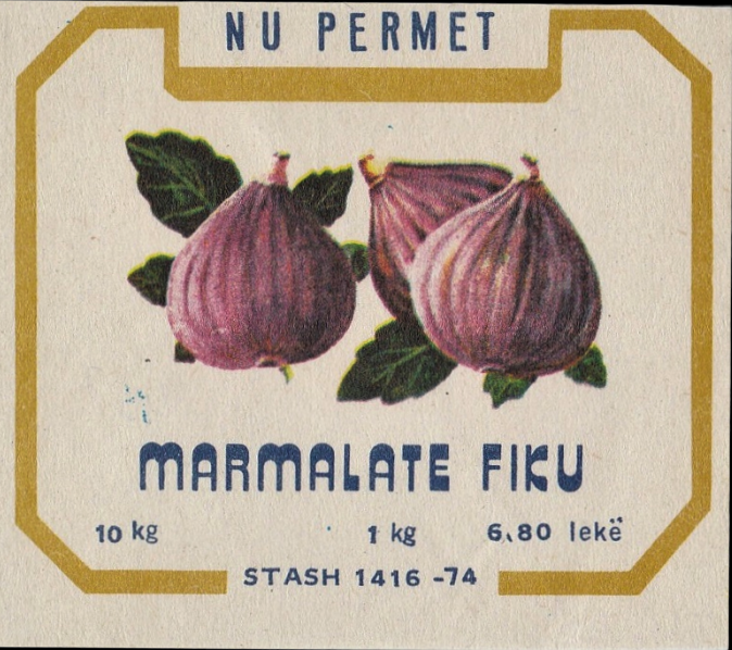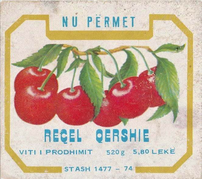 Výroba glika a džemů nebyla v Përmetu přerušena ani za tuhého komunismu, jak ukazují historické etikety:)